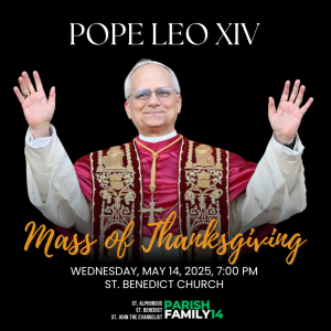 Join us on Wednesday, May 14, at 7pm at St. Benedict Catholic church for a Mass of Thanksgiving for the Pope Leo XIV.